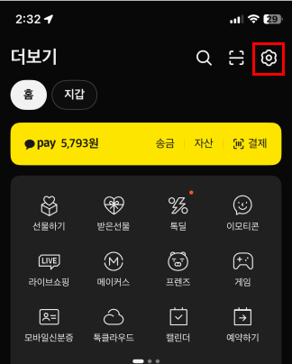 1. 카카오톡 앱 실행 → 오른쪽 하단 '더보기(···)' 탭