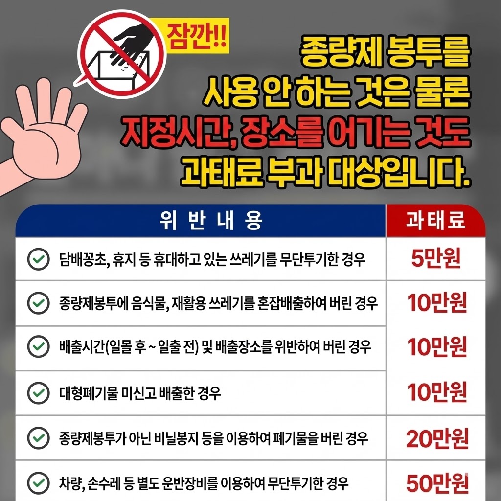 팁: "봉투는 맞았는데 시간 잘못 지켰다"도 과태료 대상입니다.