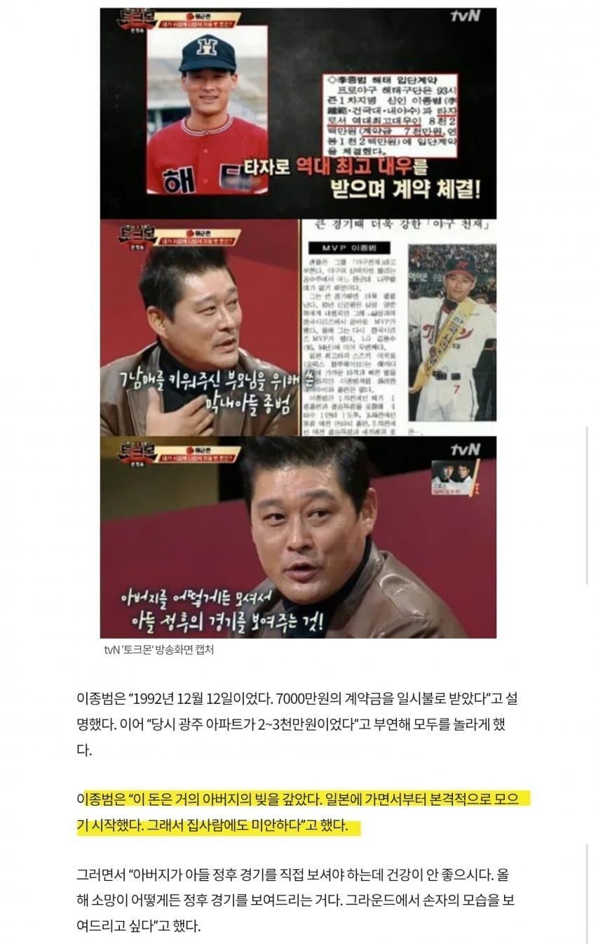 4. 이종범 미담 세부 + 야구계 아버지 빚 사례