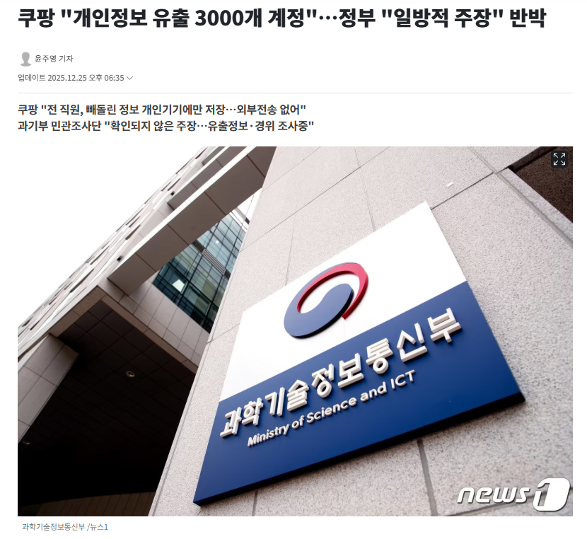 과학기술정보통신부는 쿠팡 발표 직후 보도자료를 내고 강력히 반발했습니다.