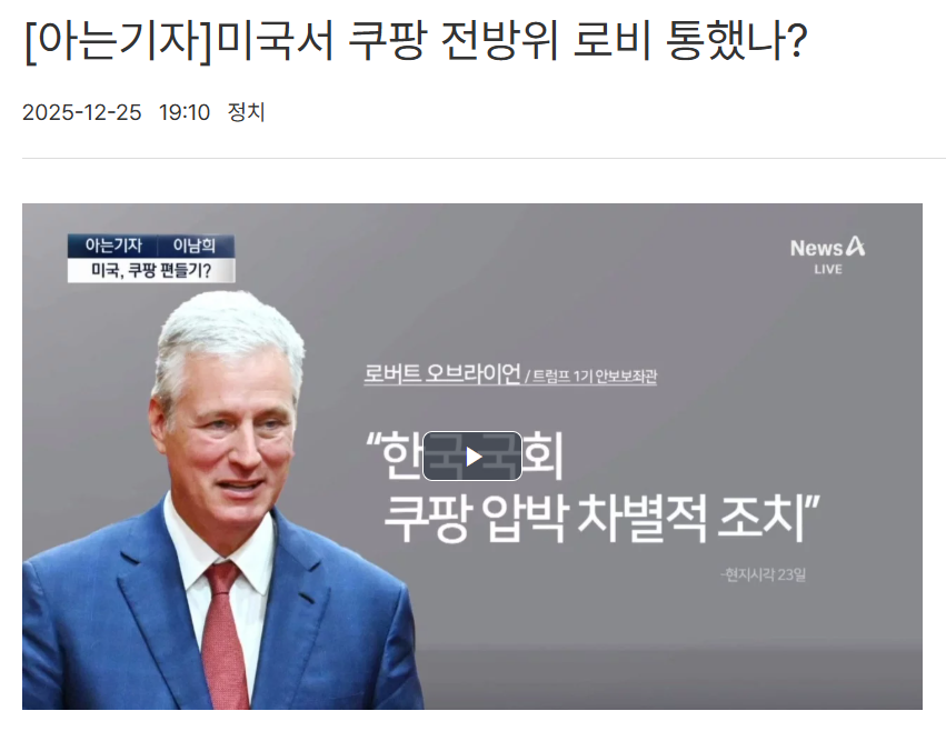 | 대한민국이 호구? 쿠팡 김범석은 숨고, 외국인 CEO는 '모르쇠' 연발 (1) | 2025.12.18 |