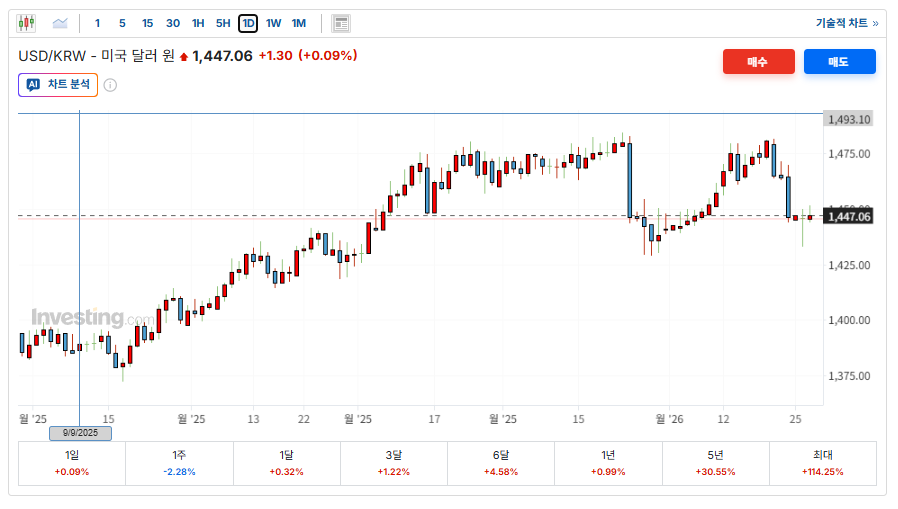원화 강세가 이어지고 있습니다. 원/달러 환율이 소폭 하락하며 이는 수입 비용 감소와 내수 회복 기대감으로 이어집니다.