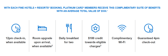 플래티넘 FHR 호텔 조식+업그레이드+4PM 체크아웃, 1,400개 공항 라운지, 항공 수수료 $200, 호텔 크레딧 $200 Amex Travel 항공·호텔 5X $695
