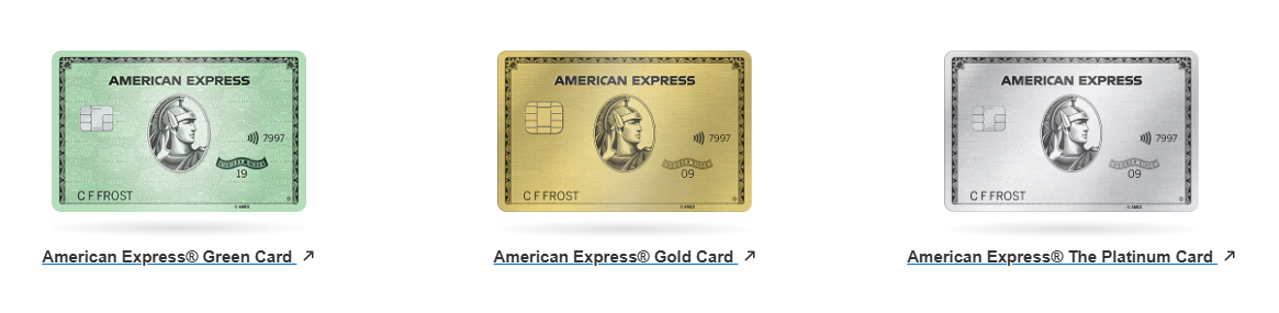 아멕스 그린, 골드, 플래티넘 카드