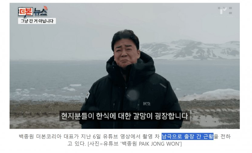 백종원이 유튜브 영상과 프로그램 예고에서 "현지 대원들이 한식에 대한 갈망이 크다"고 말한 장면이 논란이 되었습니다. 왜냐하면 남극 세종기지에는 실제로 한국인 셰프 3명이 상주하며 매일 한식을 제공하고 있기 때문입니다.