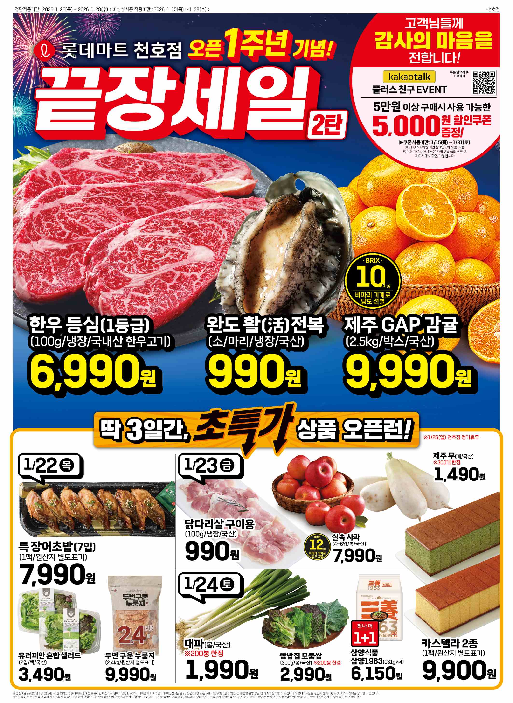 안녕하세요, 이웃 여러분. 드디어 기다리던 롯데마트 천호점 오픈 1주년 끝장세일 2탄이 시작되었습니다.