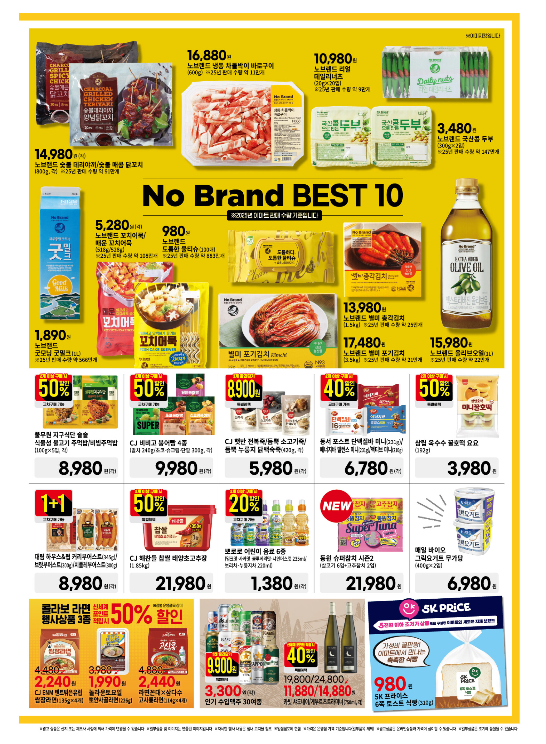 이번 페이지는 '노브랜드(No Brand) 베스트 10'과 '가공식품 1+1/반값 대란'이 핵심입니다.