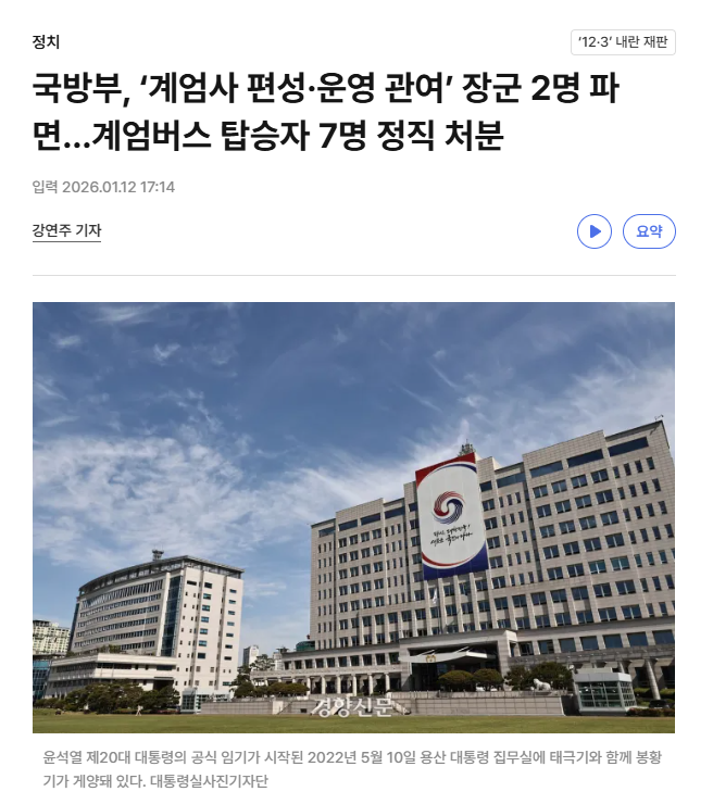 삼청동 안전가옥 회동 사건, 지방자치단체 계엄 동조 의혹, 드론 평양 침투 의혹 등이 포함됩니다.