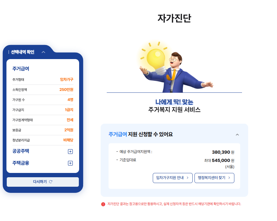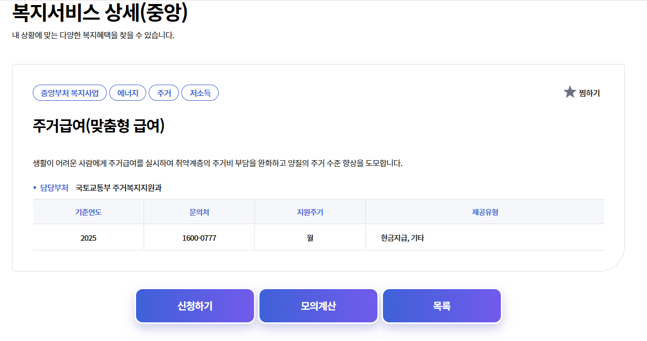 - '복지서비스 → 주거급여' 검색