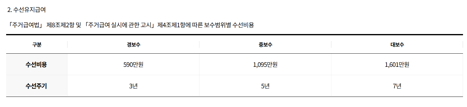 - 지붕, 보일러, 단열, 전기설비 등 수리