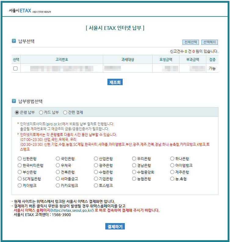 서울 거주자는 이택스(ETAX), 서울 외 지역은 위택스(Wetax)를 이용하세요.