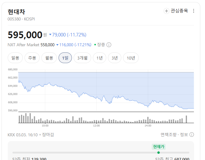 | 현대차 | 595,000원 (-11.72%) | 558,000원 | -17.21% |