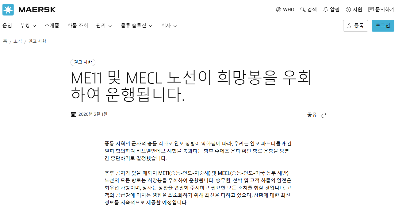 주요 선사들이 아프리카 희망봉으로 우회하며 물류비가 폭등했습니다.