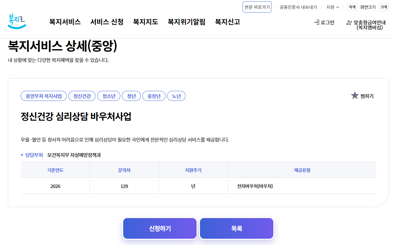 #정신건강심리상담바우처 #2026심리상담바우처 #전국민마음투자 #심리상담비용지원 #우울증상담 #불안상담 #아동청소년심리지원서비스 #부모성장심리지원서비스 #복지로신청 #심리상담무료