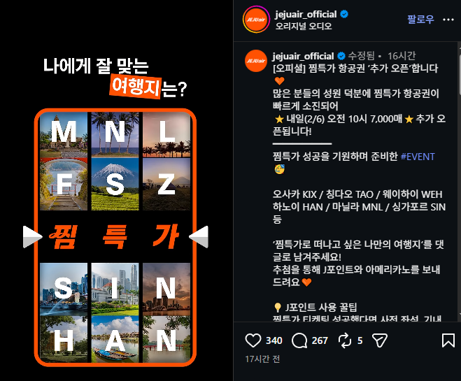 지금까지 제주항공 찜특가 추가 좌석 7천석 오픈 정보와 예매 성공 전략을 정리해드렸습니다.