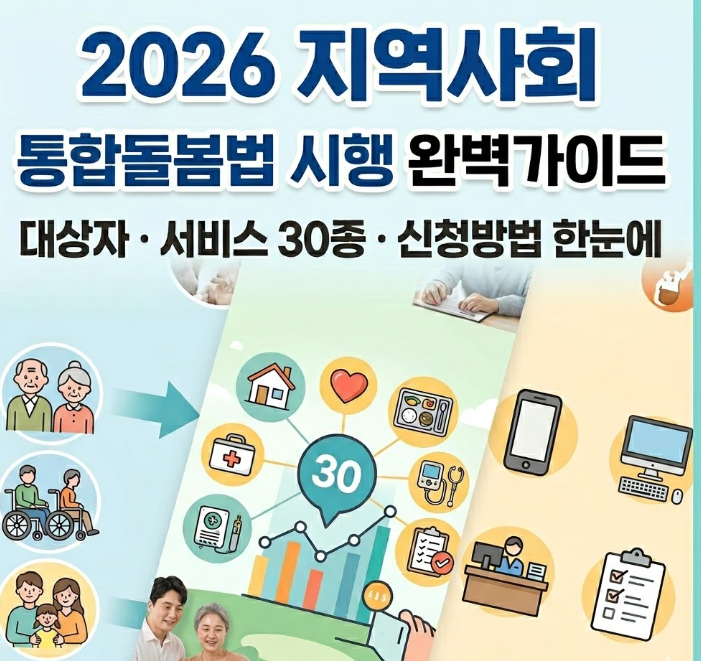 #통합돌봄법 #지역사회통합돌봄 #돌봄통합지원법 #통합돌봄신청방법 #노인복지서비스 #장기요양보험 #노인돌봄서비스 #방문요양 #방문진료 #재가서비스 #2026복지정책 #노인장기요양 #요양서비스신청 #복지혜택 #보건복지부
