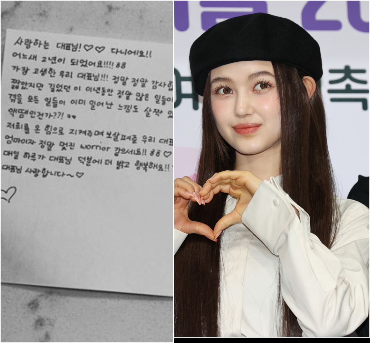 이 시기 다니엘이 민희진에게 보낸 손편지가 공개됐는데,