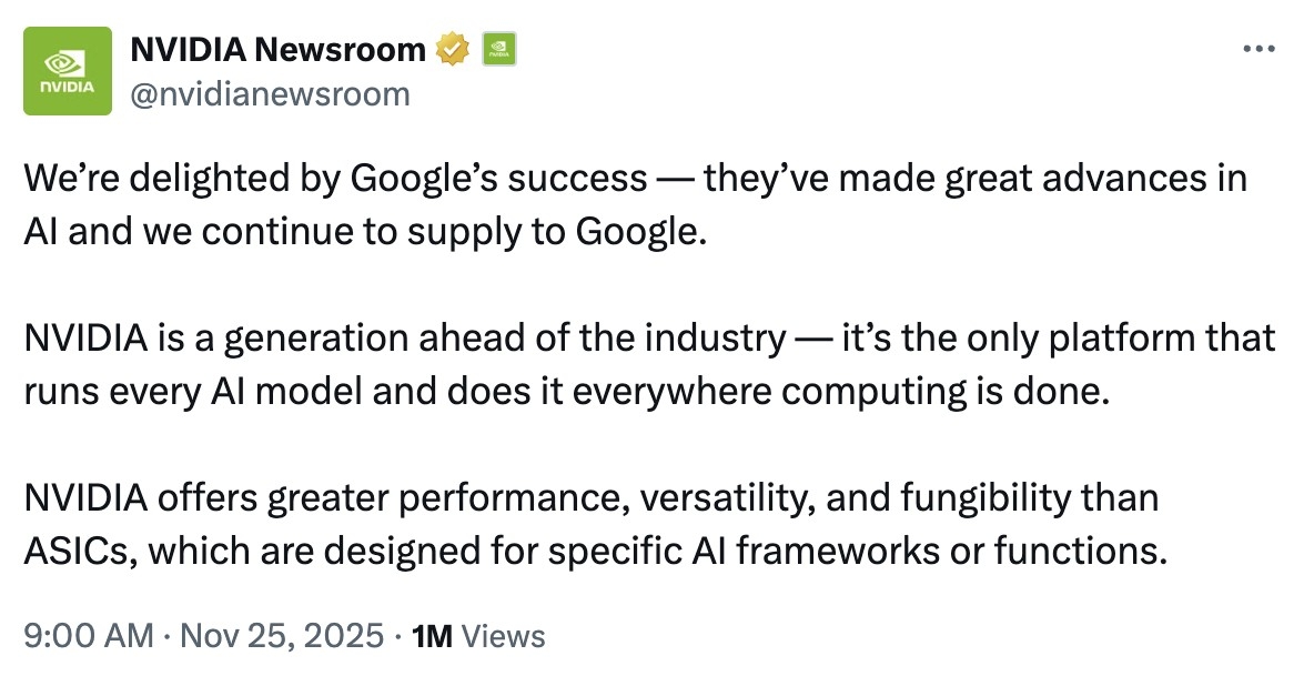 - 충격파: 메타가 구글의 TPU를 사용한다면, 엔비디아가 그동안 80% 이상의 점유율로 독점해왔던 AI 반도체 시장에서 경쟁 압박을 받게 되기 때문입니다.