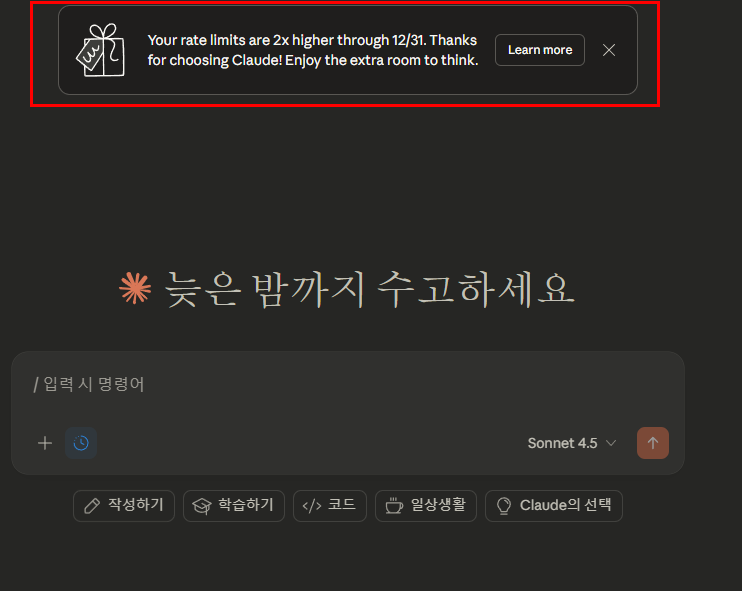 지금까지 Claude 연말 사용량 2배 프로모션에 대해 정리해봤습니다.