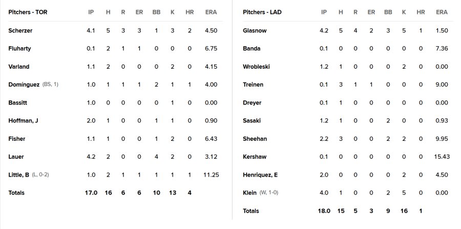 | 구분 | 다저스 | 토론토 |